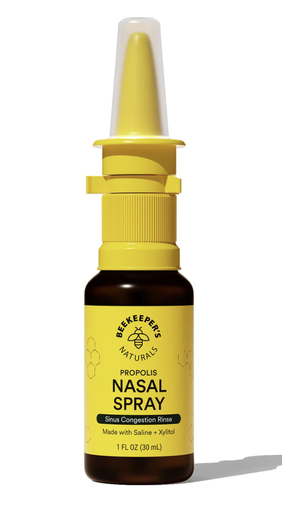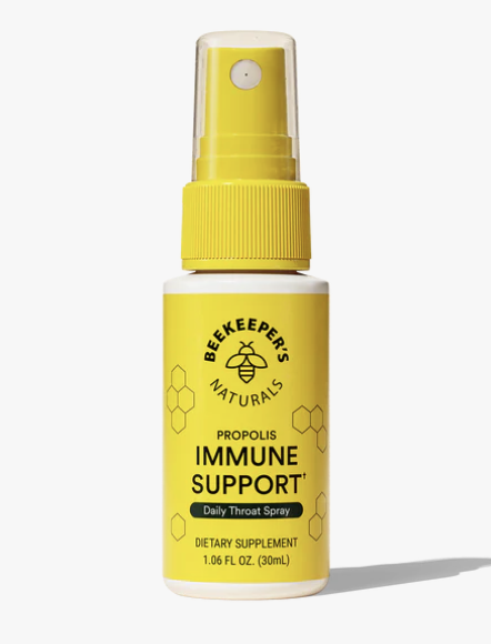 Propolis is a substance made by bees to protect their hive from infection. Specifically, it is a substance designed to coat the inside of their hive with anti-viral, anti-bacterial and anti-fungal properties. The wisdom of bees far surpasses anything that we can synthetically create. Thanks to Beekeepers’ Naturals, an amazing company due to their ability to create very clean, organic and sustainable bee products, we now have propolis in an easy-to-use nasal spray and throat spray. These are important entry points for infection, so wiping them out immediately is super helpful!
